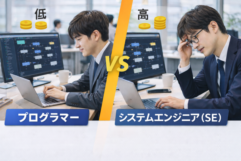 プログラマーとシステムエンジニア(SE)の違いは何かと聞かれると、「どちらも同じITエンジニアでは?」と感じる方も多いのではないでしょうか。